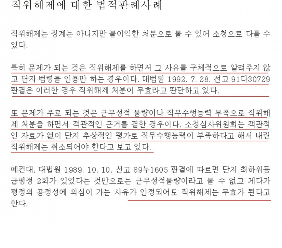 직위해제는 효력이 없다(판례)