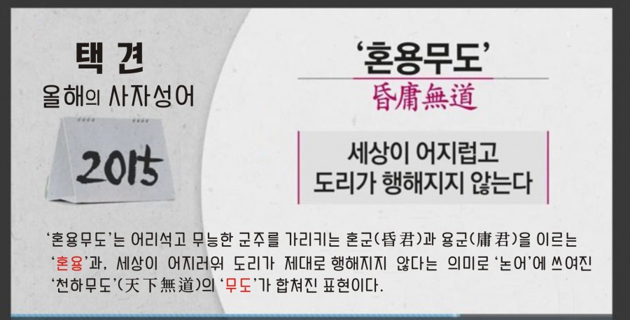 2015년 올해 선정 된 사자성어 입니다.