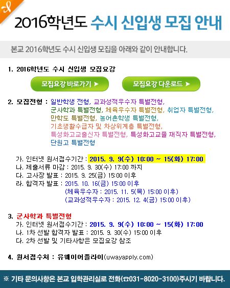 [원서접수] 2016학년도 수시 신입생 모집 원서접수 안내