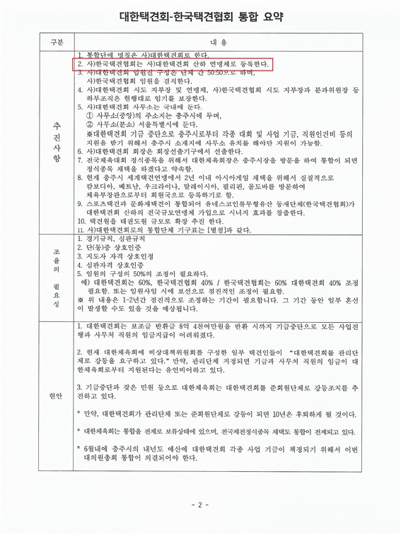 6.17총회 안건지를 보면 심의안건에 대한택견회-한국택견협회 통합 추진 건은 있어도