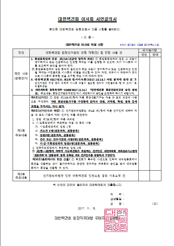지난번 임시이사회에서는 인정단체의 선거인단을 제한하는 안이 이사회에 올라온 것으로 아는데 그 때 이사회에 올라온 안건이 모두 가결되었다고 안 했나요?